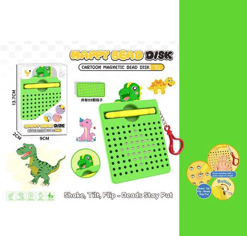 Ця компактна магнітна іграшка з кульками створена для спокійної та зосередженої гри вдома або в дорозі. За допомогою спеціального стилуса дитина переміщує металеві кульки по отворах, складаючи візерунки чи прості малюнки. Магнітні намистинки надійно тримаються всередині, тому іграшку зручно брати із собою без ризику розсипання. Такий формат гри добре тренує дрібну моторику, уважність і координацію рухів. Чудовий варіант для розвитку та зайняття дитини без шуму й екранів.