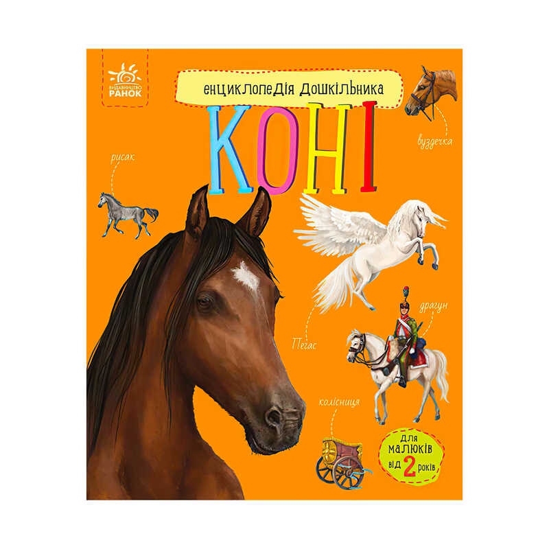 Ця енциклопедія підходить навіть для малюків від 2 років! Вона допоможе маленькому пізнайкові отримати загальне уявлення про коней і їхні особливості, вивчити нові слова, дізнатися багато цікавого про світ навколо. У книзі на вас чекають: