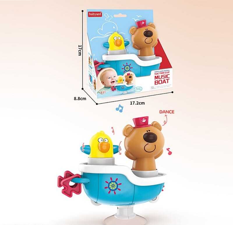 Музичний човен стане улюбленою іграшкою малюка під час купання та гри вдома. Яскраві персонажі рухаються під мелодії й світлові ефекти, створюючи веселу та динамічну атмосферу. Завдяки присосці іграшку легко закріпити на ванній або будь-якій гладкій поверхні — човен не ковзатиме і завжди буде поруч. Компактний розмір робить його зручним для маленьких ручок, а інтерактивні функції заохочують дитину до активної гри.