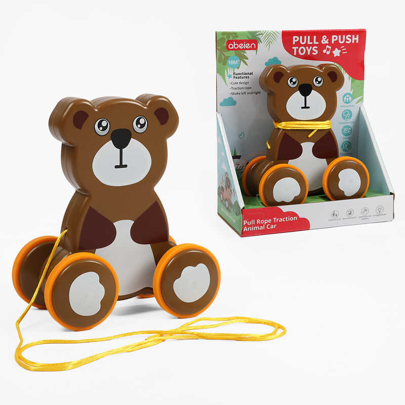 Ця яскрава каталочка у формі тваринки обов’язково захопить малюка! Дитина може тягнути її за мотузочку чи штовхати вперед, спостерігаючи за кумедними, трохи підстрибуючими рухами. Така гра не лише розважає, а й розвиває координацію, уяву та дрібну моторику!