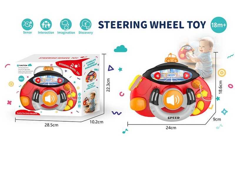 Яскраве ігрове кермо створене для захопливих сюжетних ігор та перших “подорожей” малюка. Дитина із задоволенням крутить кермо, натискає кнопки та слухає веселі звуки, відчуваючи себе справжнім водієм. Рухомі елементи, підсвічування й звукові ефекти роблять гру живою та різноманітною. Іграшка допомагає розвивати дрібну моторику, координацію рухів і уяву.