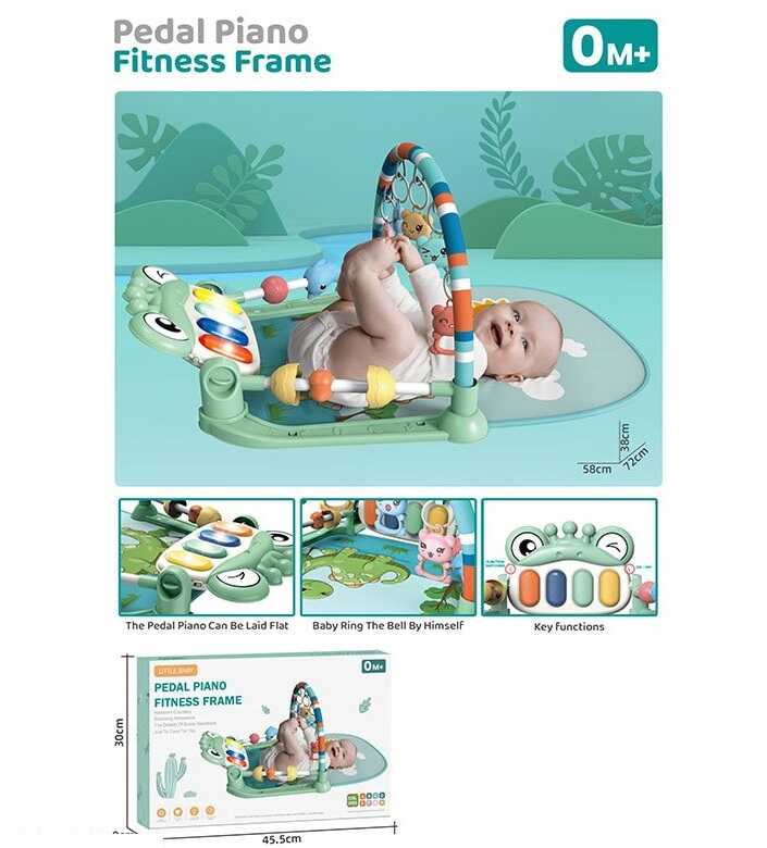 Цей яскравий музичний килимок з піаніно створений для перших рухових відкриттів малюка та комфортних ігор від народження. М’яка основа забезпечує зручність під час лежання на спині чи животику, а дуга з підвісками стимулює тягнутися ручками та досліджувати світ навколо. Головною родзинкою є піаніно, яке можна встановлювати під різним кутом — малюк натискає ніжками або ручками, вмикаючи світло та звуки. Це заохочує активність, розвиває моторику та допомагає тренувати координацію. Килимок продуманий так, щоб дитині було цікаво на кожному етапі розвитку — від перших дотиків до активних ігор.