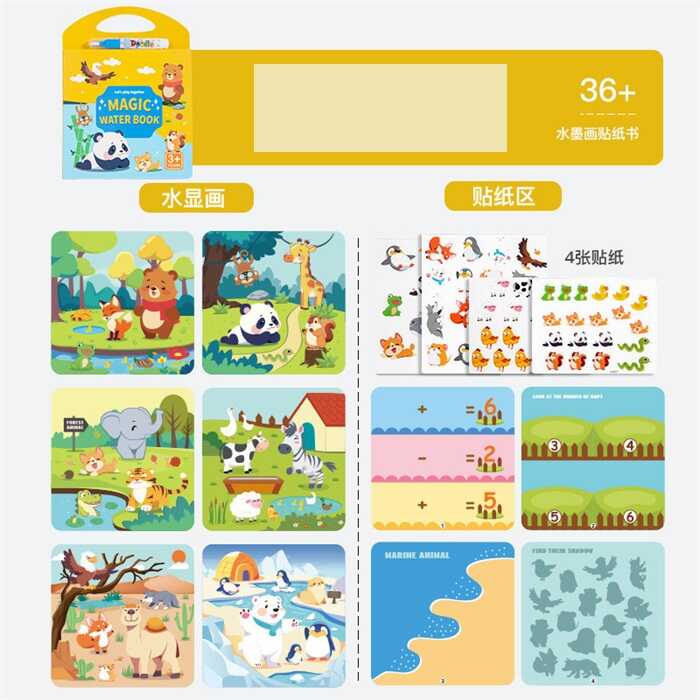 Магічна водна книга з наліпками — це неймовірно цікава й безпечна розвага для малюків! Варто лише наповнити ручку водою й провести по сторінці — і з’являться яскраві сюжети. Коли сторінки висихають, малюнки зникають, і дитина може розмальовувати знову й знову.