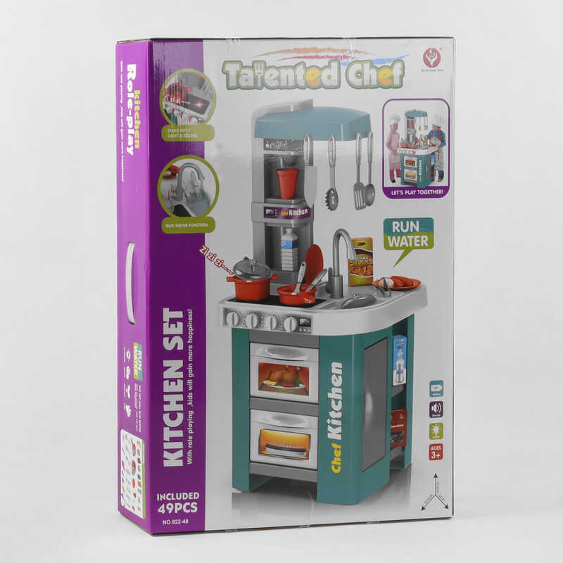 Кухня оснащена електричною системою подачі води, світловими та звуковими ефектами (потрібні 3 батарейки АА, які не входять до комплекту).