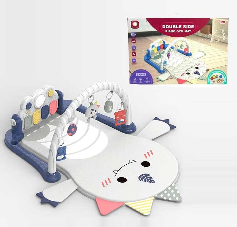 Цей музичний килим створений для раннього розвитку малюка та комфортної гри вдома щодня. М’яка основа, приємні кольори та веселі елементи стимулюють цікавість, а великий функціональний блок дарує багато варіантів активностей. Двостороннє піаніно реагує на натискання, світиться та відтворює мелодії, заохочуючи дитину рухати ніжками й ручками. Підвіски, брязкальця й текстильні іграшки сприяють розвитку сенсорики й моторики, а шестерні та пальчикові ігри допомагають освоювати координацію. Такий килим стане улюбленим місцем для гри, відпочинку та перших відкриттів.
