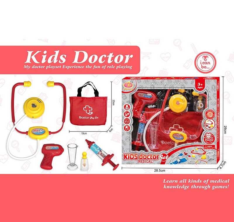 У комплекті є зручна сумочка та різноманітні медичні інструменти, з якими малюк зможе «лікувати» іграшки та близьких.