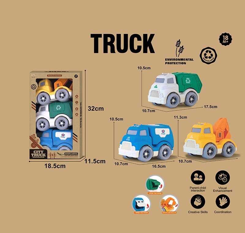 Ці милі машинки створені з турботою про довкілля для активної та захопливої гри малечі. Транспорт виконаний з біопластику, приємного на дотик і безпечного для дитини, тож він ідеально підходить для щоденних ігор.