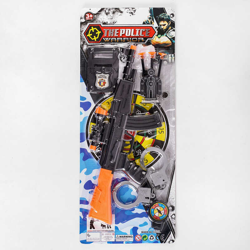 Тут міститься все необхідне для гри в поліцію. Ігровий набір містить: автомат з патронами на присосках, наручники, компас, стоячу мішень і значок поліціянта.