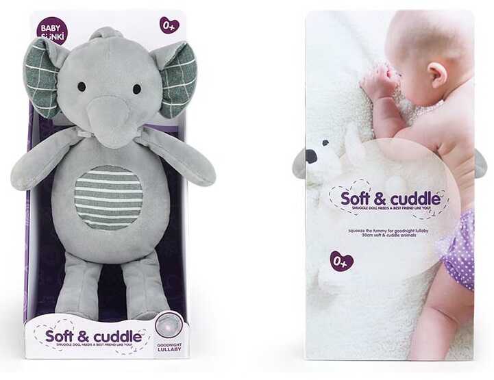 - на голові у слоника є 2 шнурки, за допомогою яких його можна прив’язати до ліжечка чи дитячого візочка;
