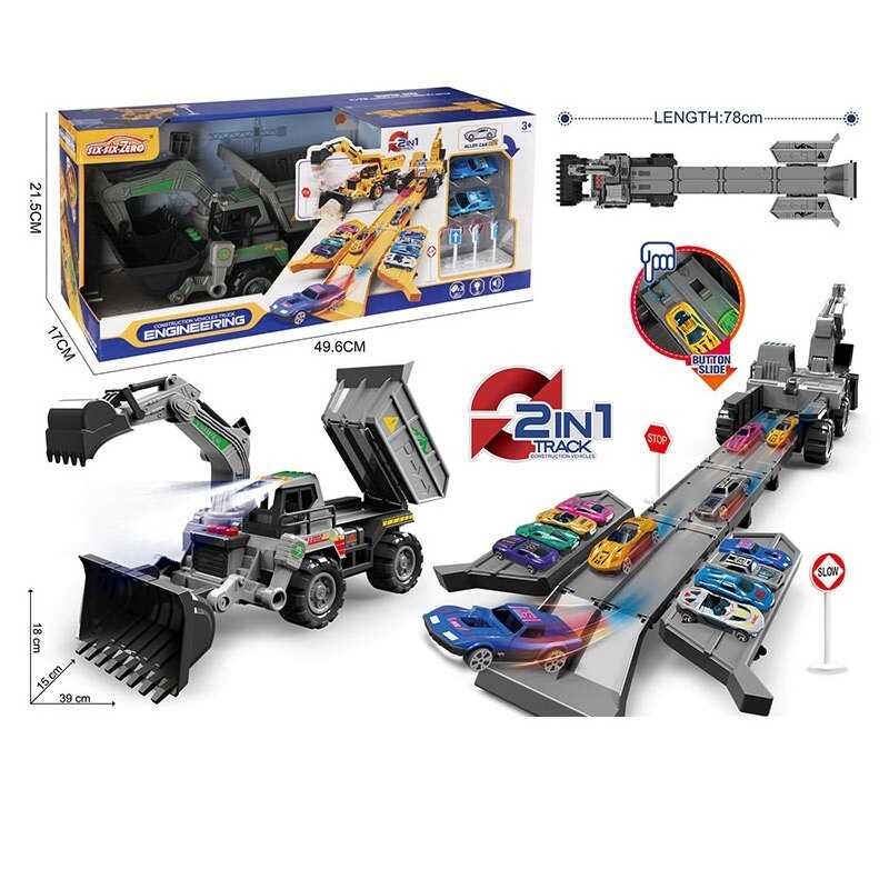 Ігровий набір, який поєднує трек для перегонів і спецтехніку, створюючи неймовірно цікаву гру для дітей! Машина-екскаватор легко перетворюється на довгу трасу з рампами, з’їздами та паркінгом. У комплект входять яскраві автомобілі, які можна запускати на швидкість, натиснувши кнопку. Така гра розвиває уяву, координацію рухів і логічне мислення. Набір стане чудовим подарунком для юних любителів техніки та динамічних перегонів!