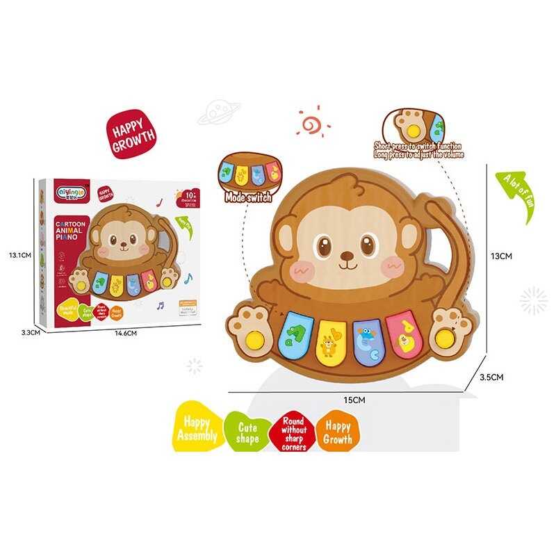 Це миле піаніно у вигляді кумедної мавпочки одразу привертає увагу малюка та заохочує до гри. Яскраві кнопки легко натискати маленькими пальчиками, досліджуючи нові звуки та мелодії. Чудовий вибір для раннього розвитку дітей від 10 місяців.