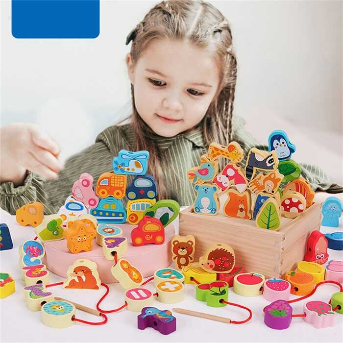 дерев’яні фігурки з тваринками, цифрами та різними тематичними малюнками;