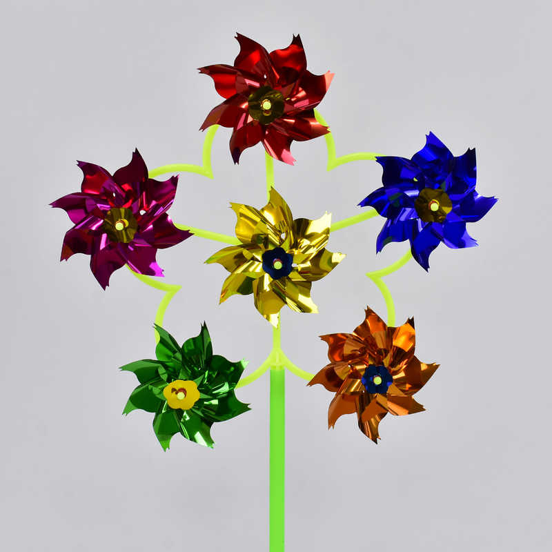 - вітрячок виконаний у вигляді яскравих, різнокольорових квіточок;